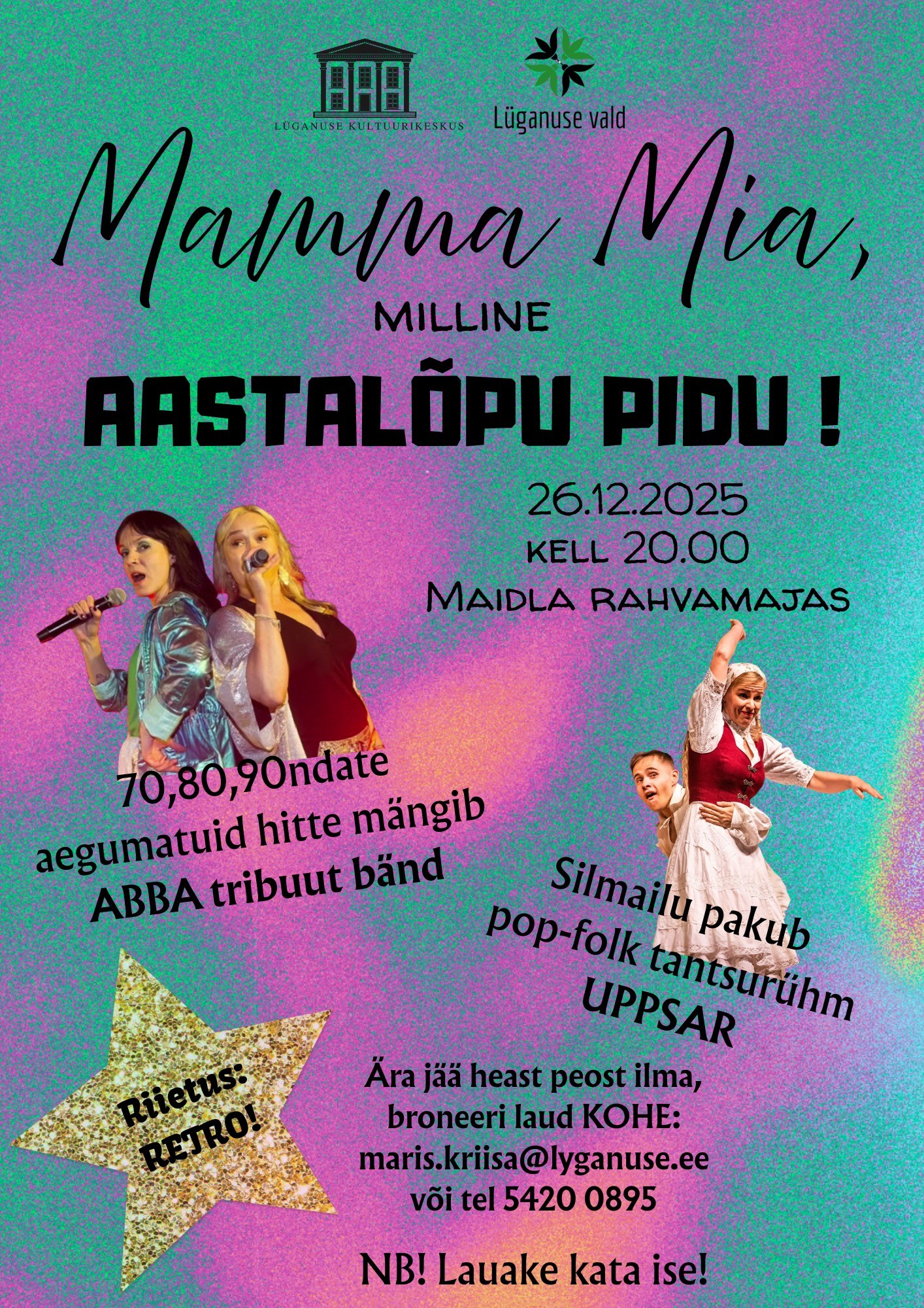 Lõpetame 2025. aasta stiilselt! Parimat retromuusikat ning aegumatuid ABBA hitte mängib ABBA tribuut bänd. Riietus vastavalt ajastule!