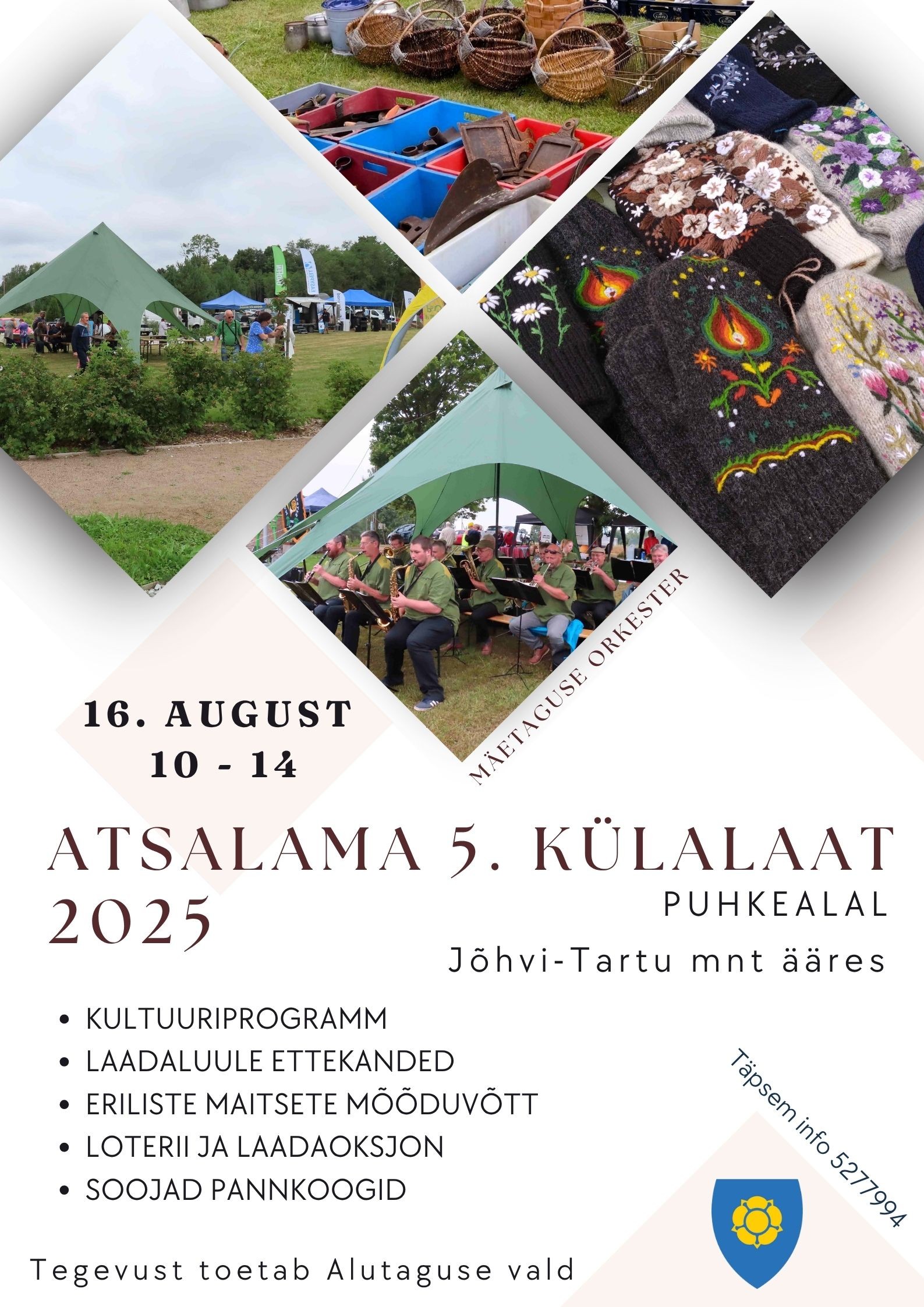 Vaba kauplemine. Meelelahutust pakuvad kohalikud taidlejad ja Mäetaguse orkester.