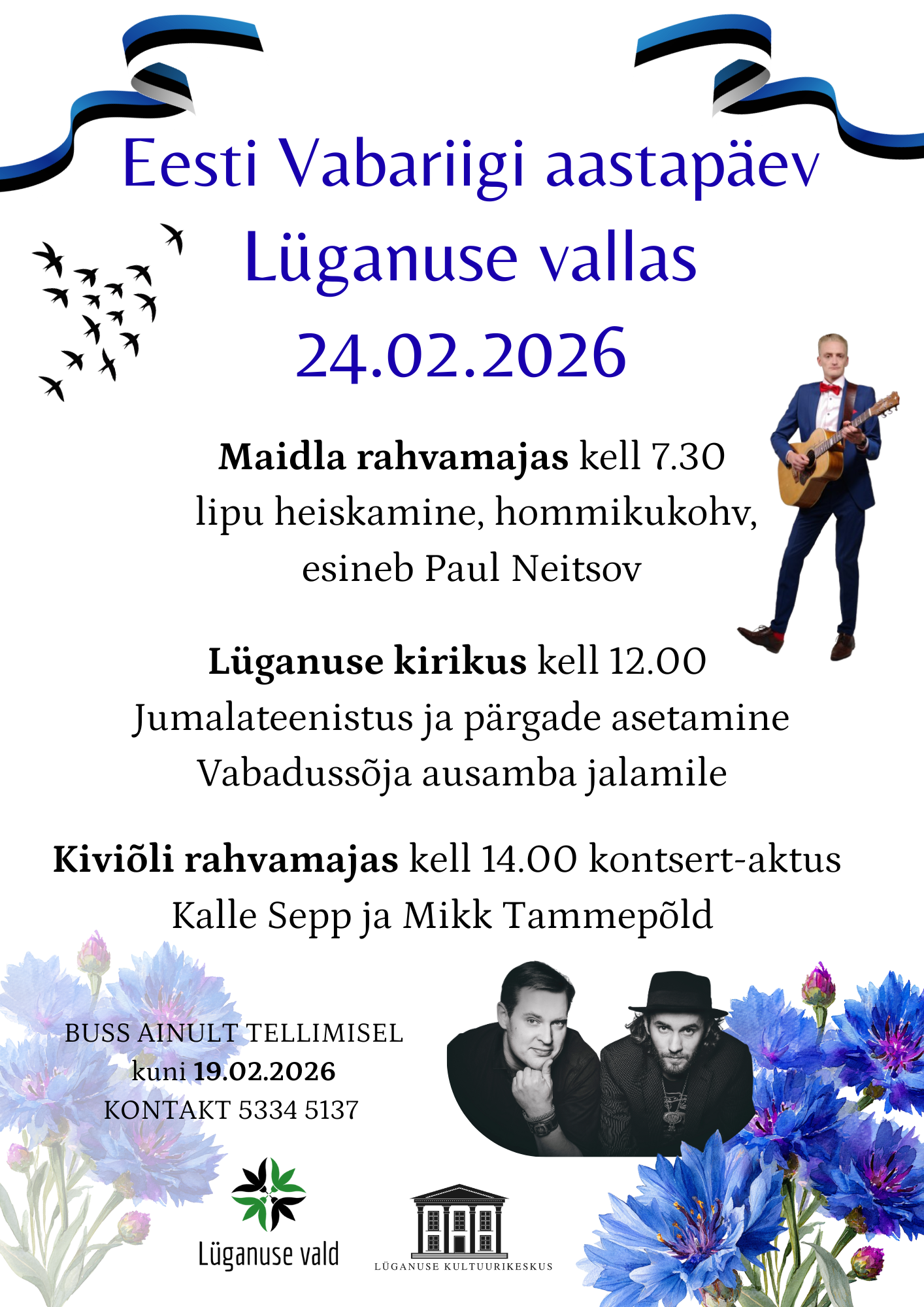 Maidla rahvamajas kell 7.30 lipu heiskamine, hommikukohv, esineb Paul Neitsov