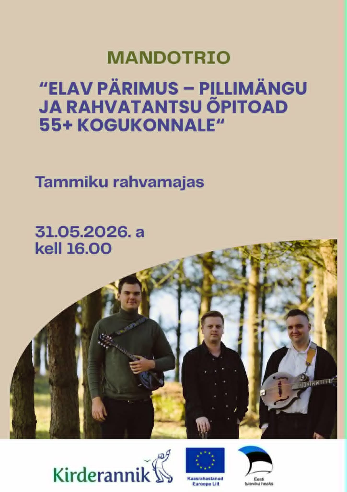 Olete oodatud osalema elava pärimuse pillimängu ja rahvatantsu õpitoas 55+ kogukonnale.
