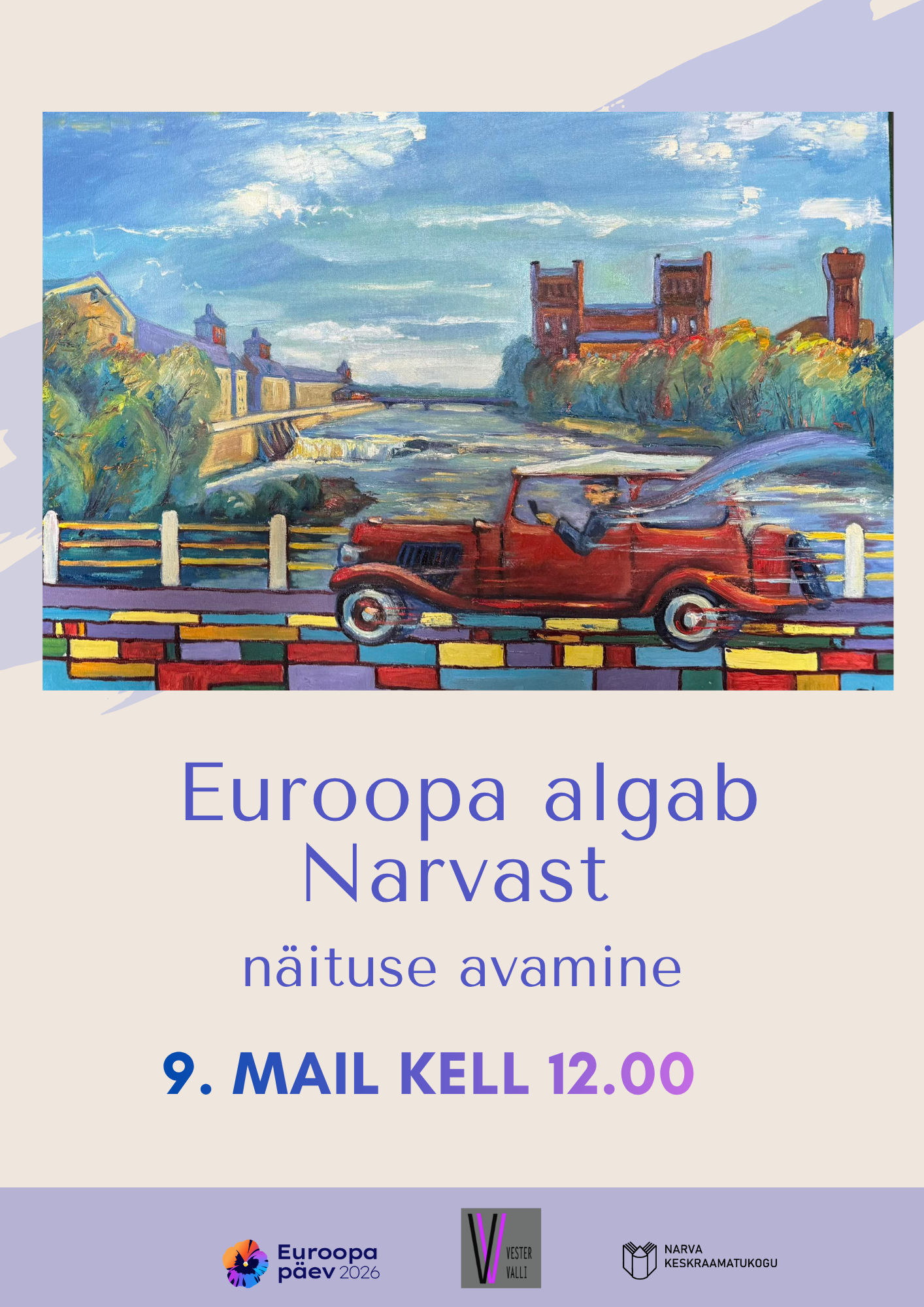 9. mail kell 12 toimub Narva Keskraamatukogus Eesti kunstnike näituse „Euroopa algab Narvast“ pidulik avamine, mis on pühendatud Euroopa päevale.