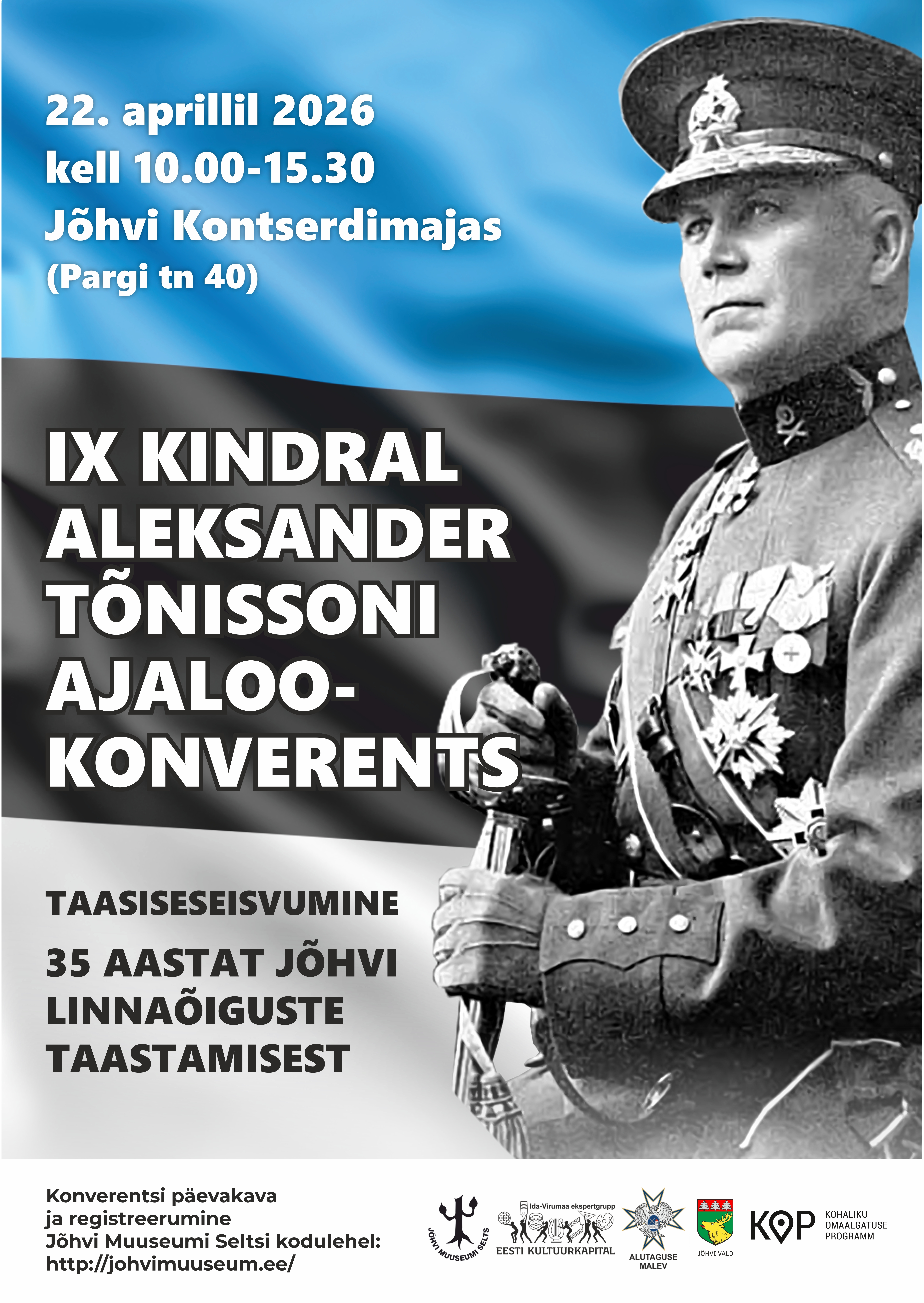 Jõhvi Muuseumi Selts korraldab kolmapäeval, 22. aprillil Jõhvi kontserdimaja kammersaalis IX kindral Aleksander Tõnissoni ajalookonverentsi “Taasiseseisvumine. 35 aastat Jõhvi linnaõiguste taastamisest“.