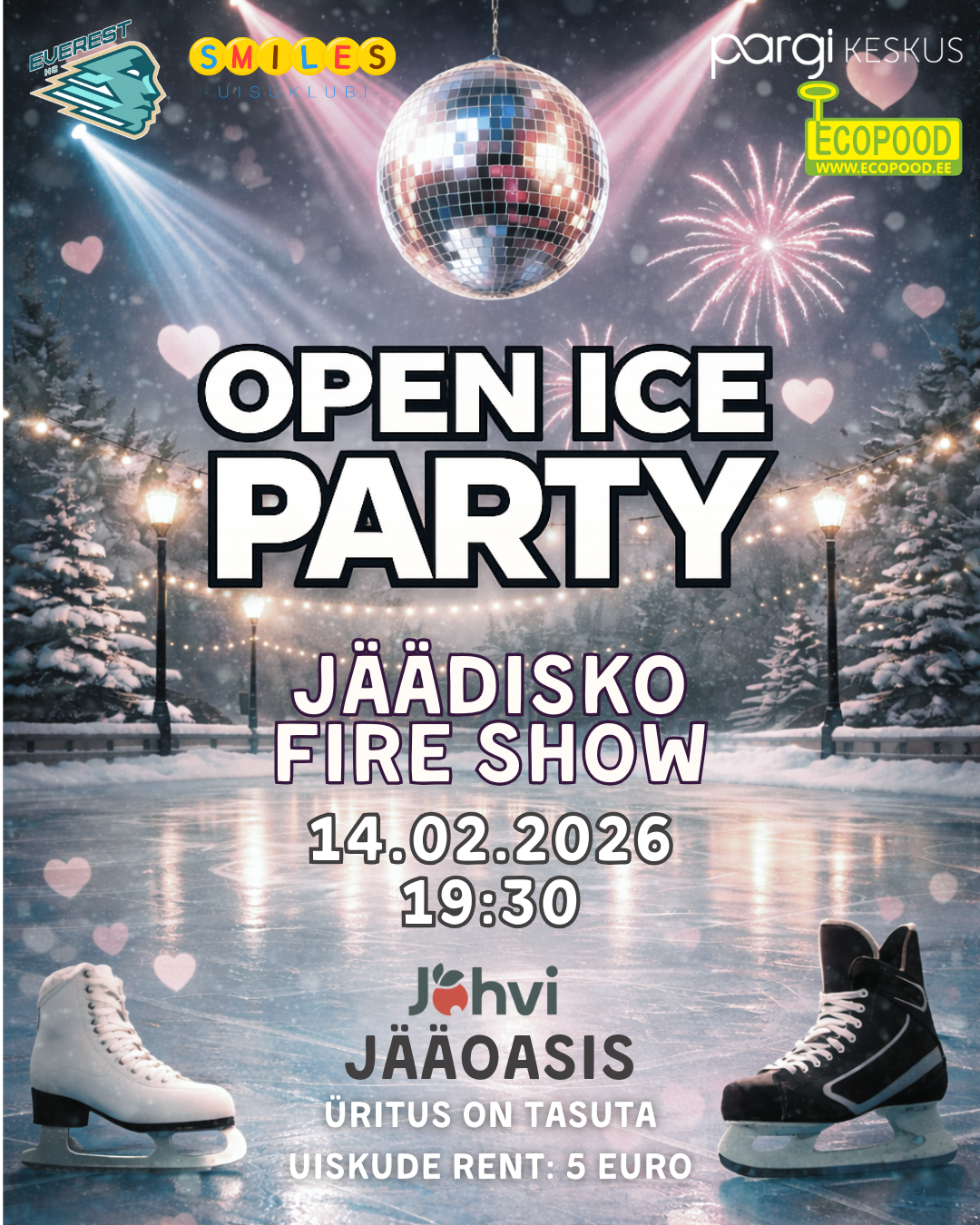 14.veebruar on hea põhjus olla koos, naeratada, kallistada ja jagada emotsioone. Sel talvisel õhtul kutsume teid jääl toimuvale diskole meie armsasse Jõhvi Jääoaasi.