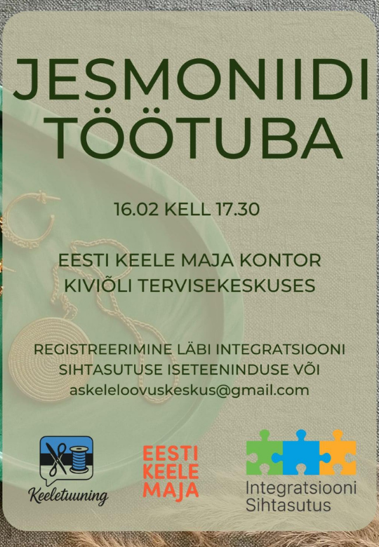 Töötoas meisterdatakse jesmoniidist alus. Vestlus tekib loomingulise protsessi käigus – rahulikult ja sundimatult. Tähelepanu on suhtlusel, sõnavara kasutamisel ning uute väljendite ja sõnade loomulikul omandamisel.