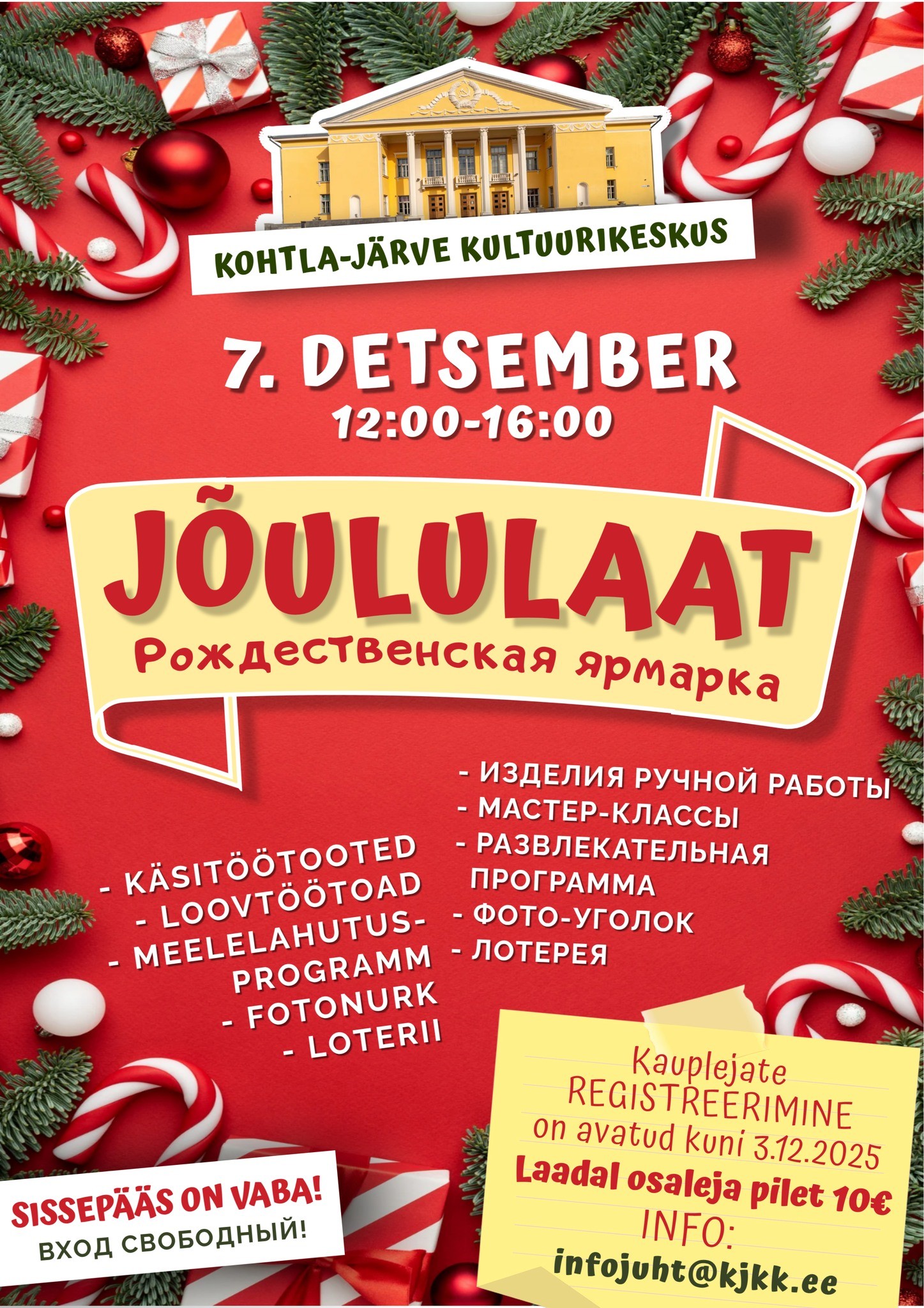 JÕULULAAT toimub 7.12.2025 12:00 - 16:00 Kohtla-Järve Kultuurikeskuse hoones (Keskallee 36, Kohtla-Järve)