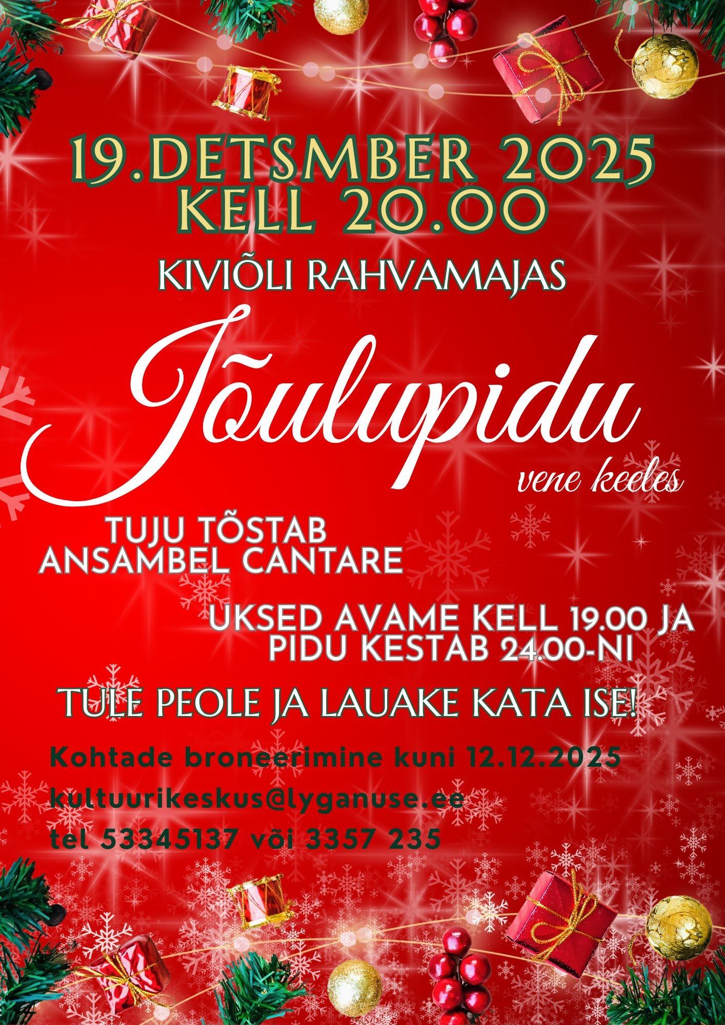 Kohtade broneerimine kuni 12.12.2025 kultuurikeskus@lyganuse.ee tel 53345137 või 3357 235