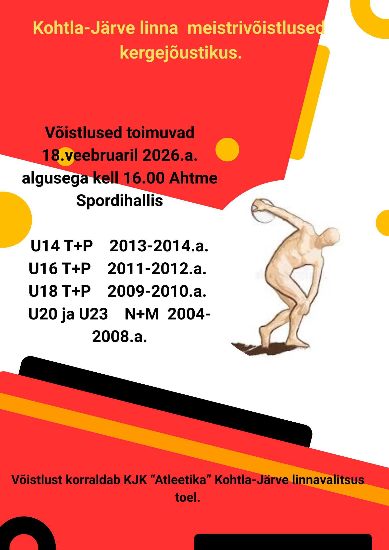 Võistlused toimuvad 18.02.2026.a. algusega kell 16.00 Kohtla-Järve Spordikeskuse kergejõustikuhallis asukohaga Maleva tn. 17a. Peakohtunik Viktor Predbannikov ja peasekretär Lilia Schmidt.