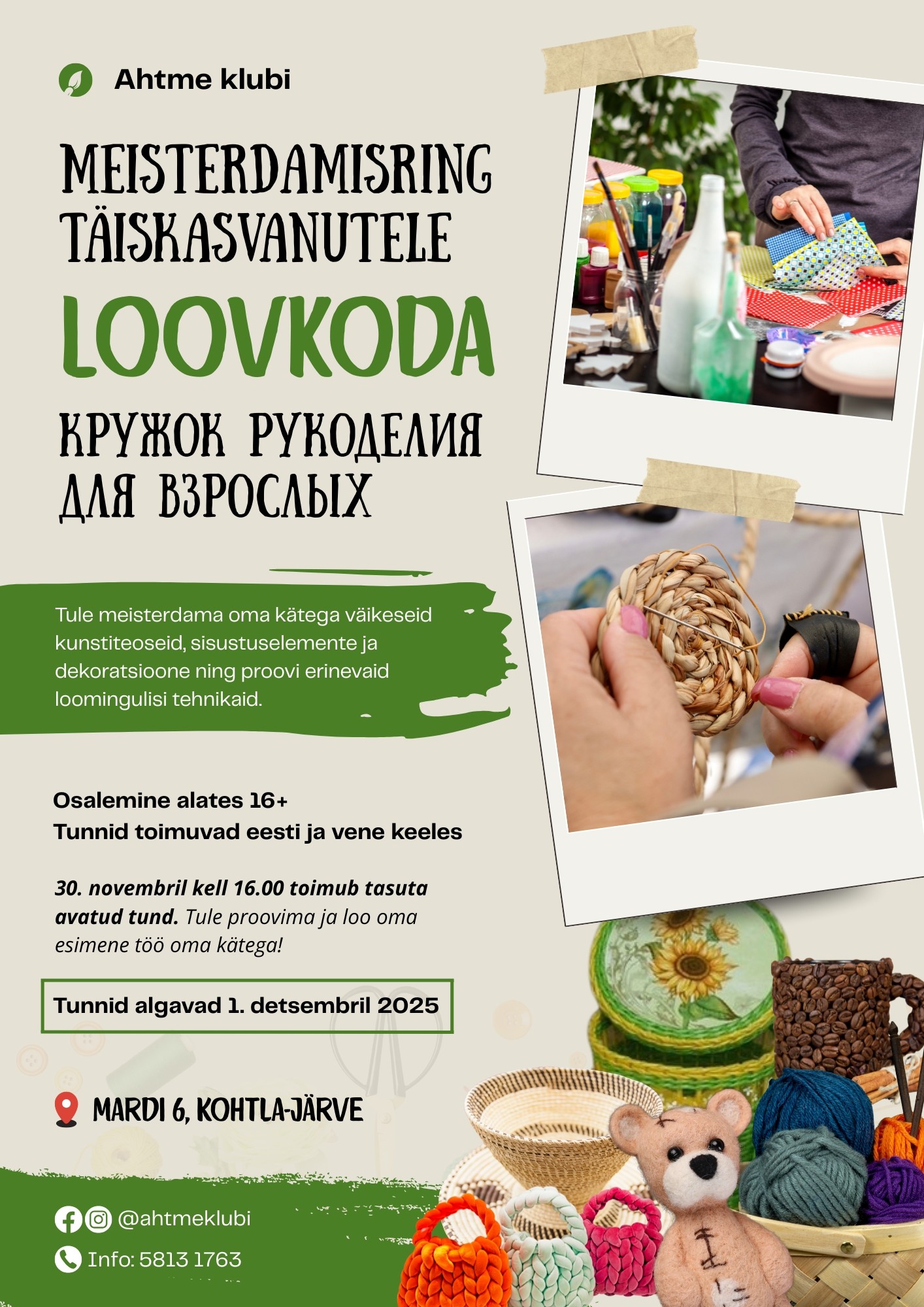 Ahtme Klubi kutsub kõiki, kes armastavad oma kätega luua ilu ja hubasust!