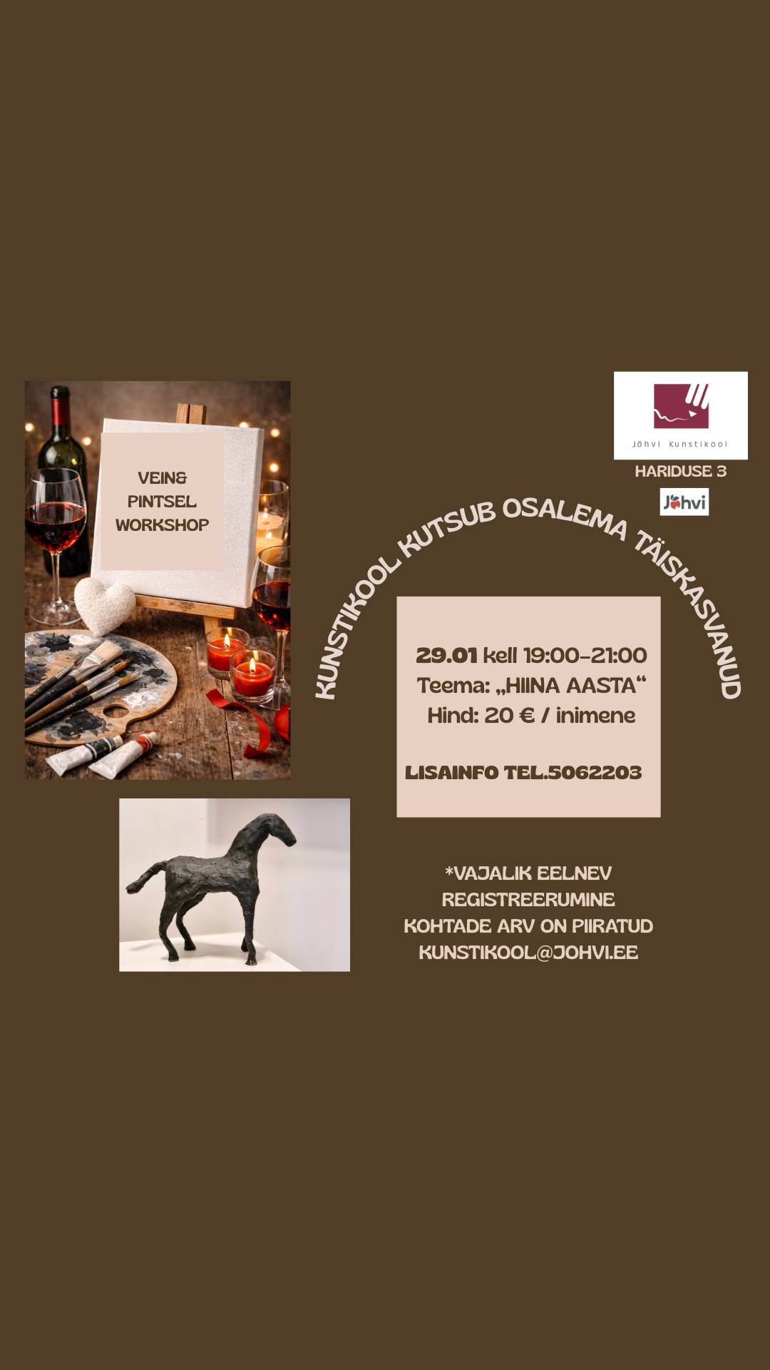 JKK näituse ajal toimub populaarne Vein & Pintsel workshop, kus kunstitegemine ja mõnus seltskond saavad kokku.