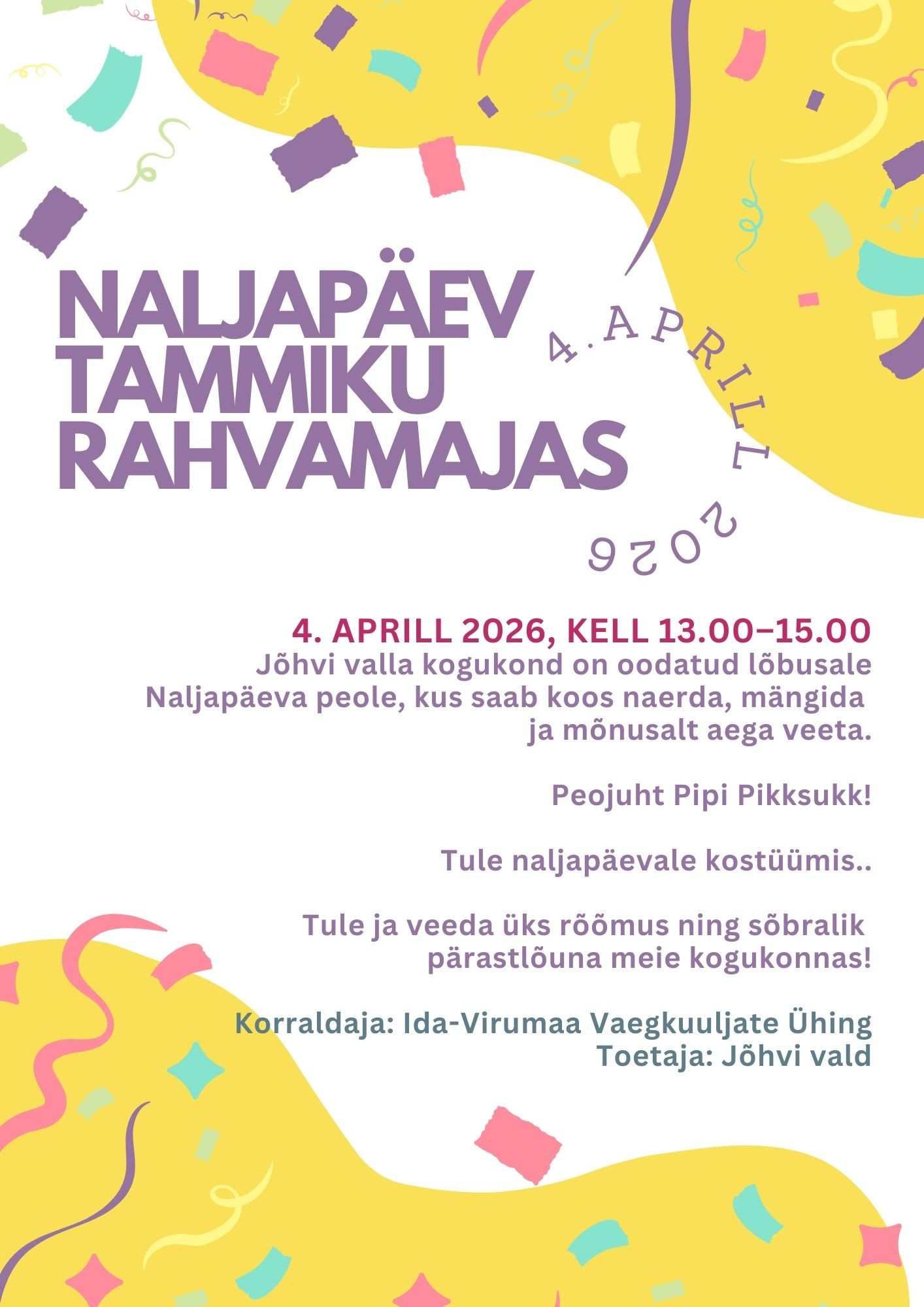 Jõhvi valla kogukond on oodatud lõbusale naljapäeva peole, kus saab koos naerda, mängida ja mõnusalt aega veeta!
