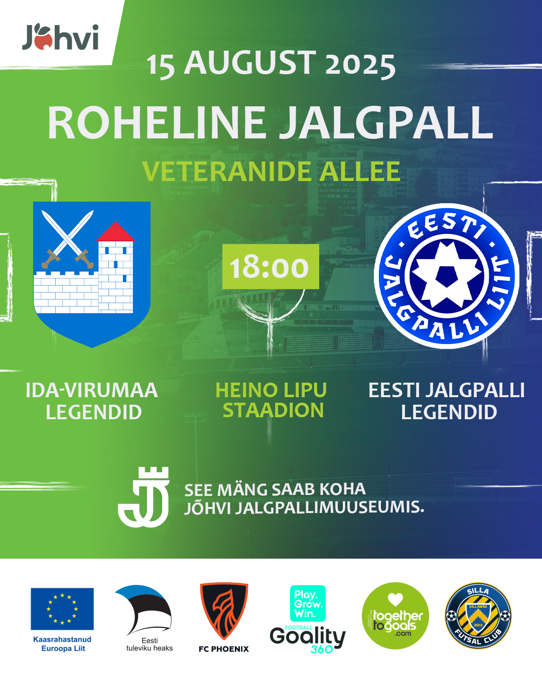 Reedel, 15. augustil kell 18.00 toimub Heino Lipu staadionil suur legendide mäng, kus endistest Eesti meeste koondise jalgpalluritest koosnev meeskond kohtub Ida-Virumaa veteranide meeskonnaga. Mõlema meeskonna koosseisus on mitmeid tuntud jalgpallureid. Eesti koondist juhib EJL-i president Aivar Pohlak, Ida-Virumaa veterane juhendab Sergei Zamogilnõi.