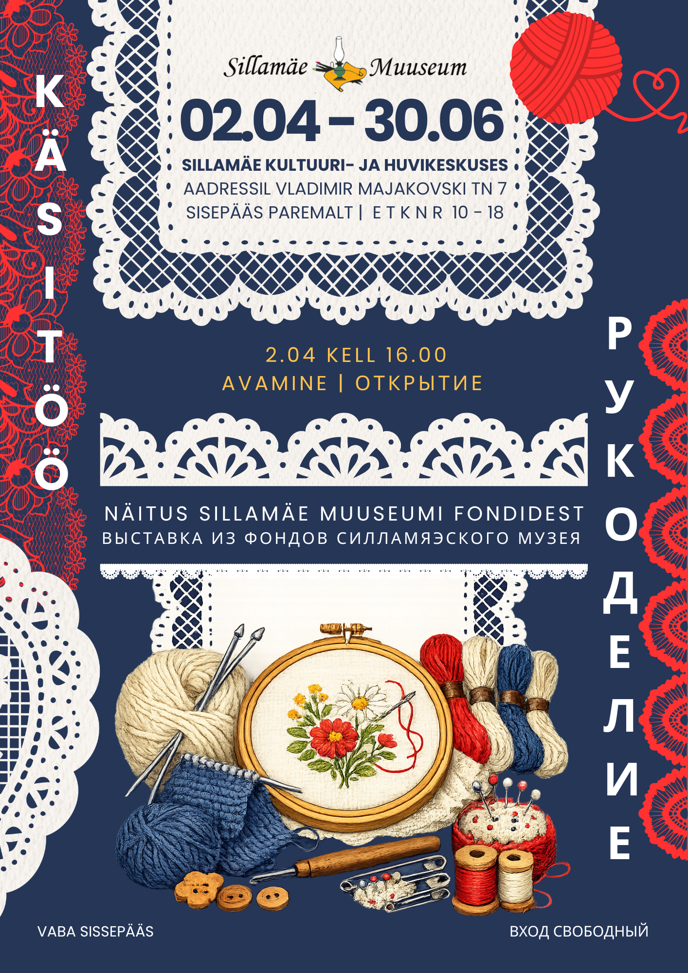 Sillamäe Muuseum kutsub külastama näitust „Käsitöö“, mis tutvustab muuseumi fondides säilitatavaid käsitööesemeid. Näitus toob esile traditsioonilised käsitööoskused, materjalid ja tehnikad, pakkudes külastajatele võimalust tutvuda nii ajalooliste kui ka esteetiliste väärtustega.
