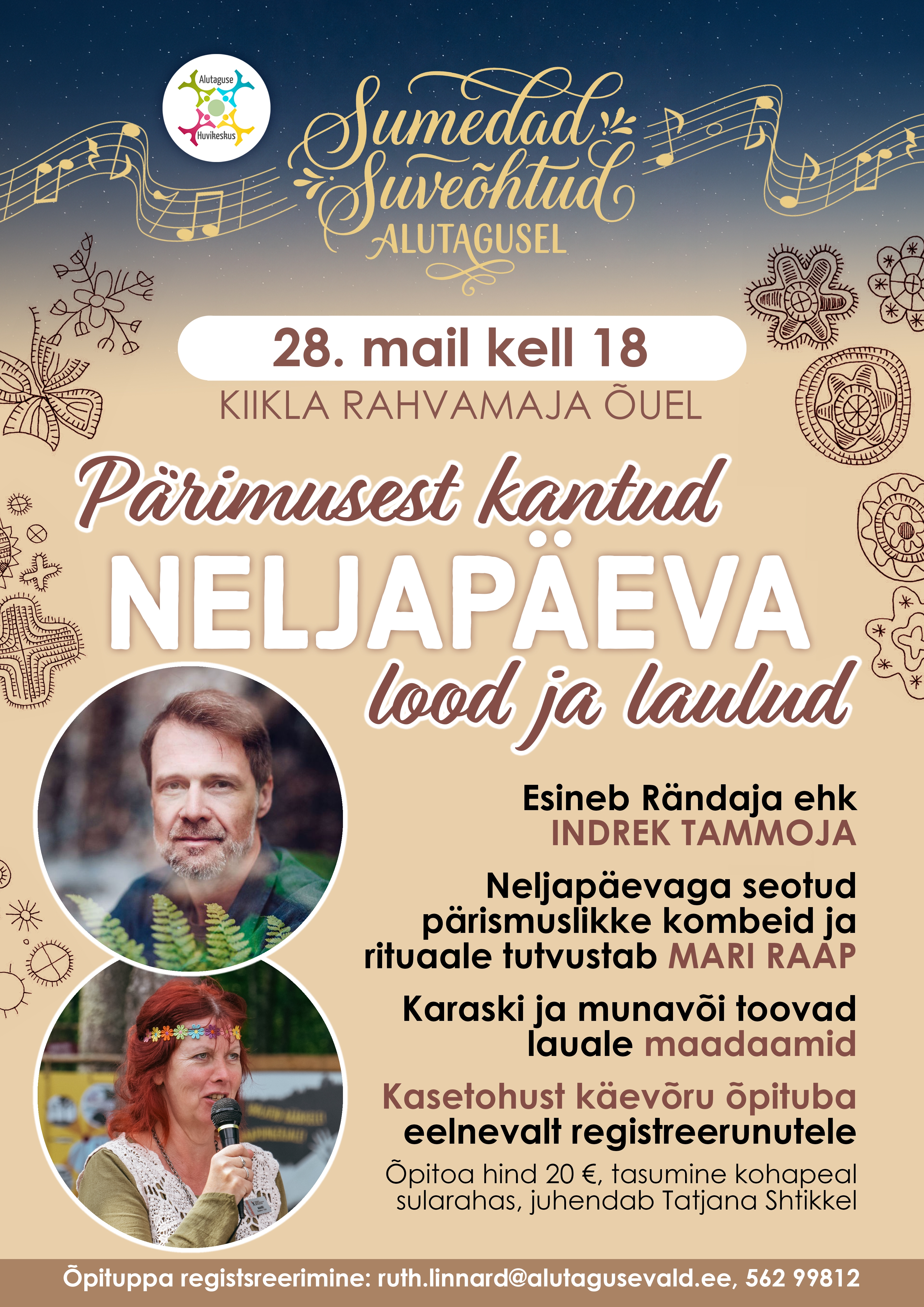 Kasetohust käevõru õpituba eelnevalt registeerunutele (õppituppa registreerimine ruth.linnard@alutagusevald.ee). Osalustasu 20 €, juhendab Tatjana Shtikkel