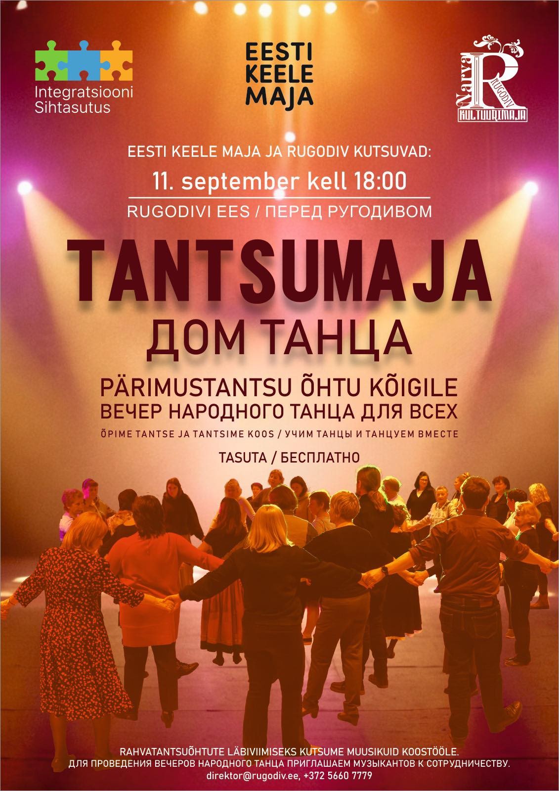 Kultuurimaja Rugodiv ja Eesti keele maja kutsuvad teid 11. septembril kell 18.00 taas elava muusika saatel pärimustantse tantsima!