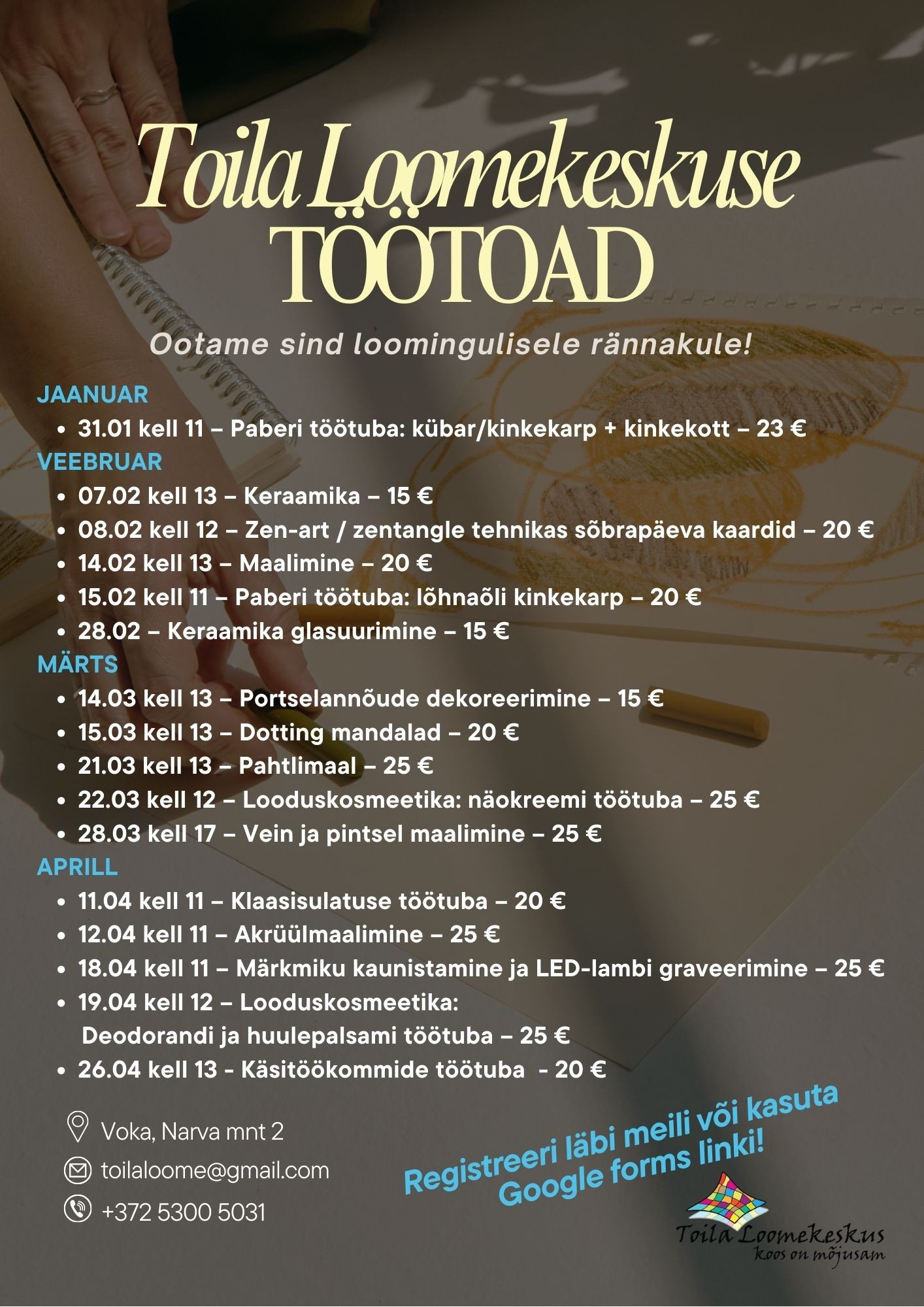 Registreeri läbi meili või kasuta Google Forms lingi! https://forms.gle/A7tVXg5FG9uRQent9