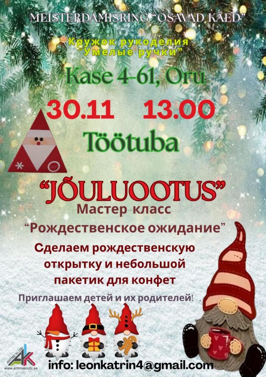 📅 Millal: 30. november ⏰ Aeg: 13:00 📍 Aadress: Kase 4–61, Oru 📩 Info: leonkatrin4@gmail.com 😊 Sissepääs tasuta!