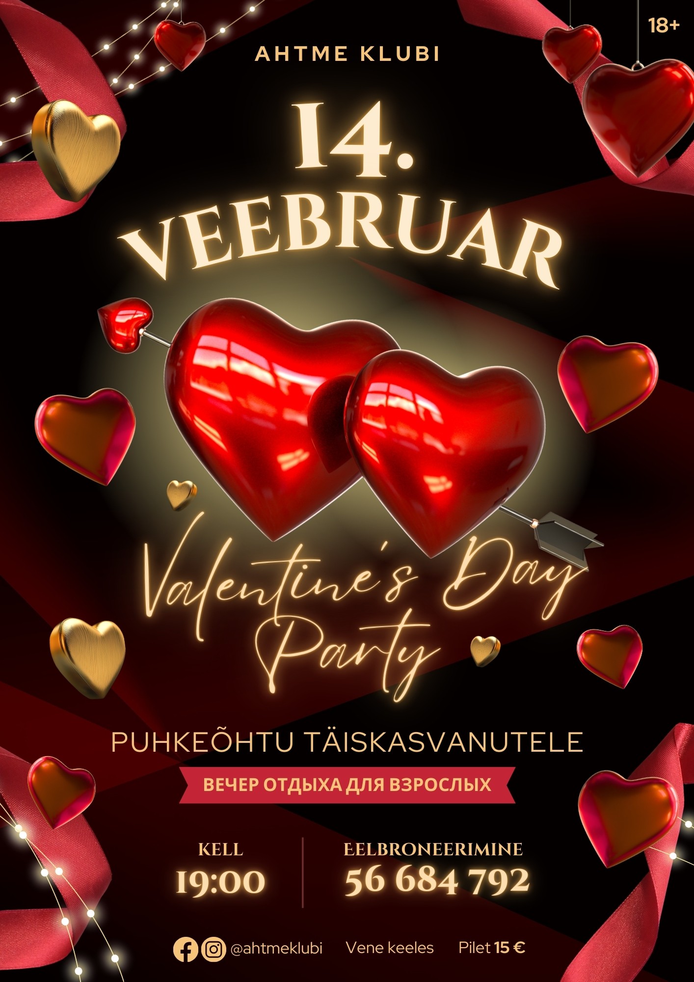 14. veebruaril kutsub Ahtme Klubi sind Valentine’s Day Party’le - stiilsele ja emotsionaalsele õhtule täis flirti, tantsu ja kauneid hetki.