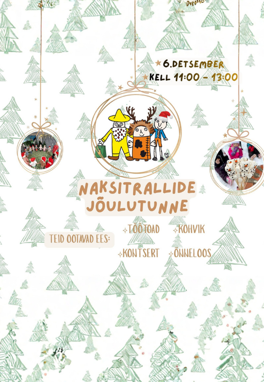 Naksitrallide Jõulutunne ootab Teid taas! Tulge meile külla ja nautige jõulude imelist meeleolu! Teid ootavad: erinevad töötoad hubane jõulukohvik põnev õnneloos kontsert
