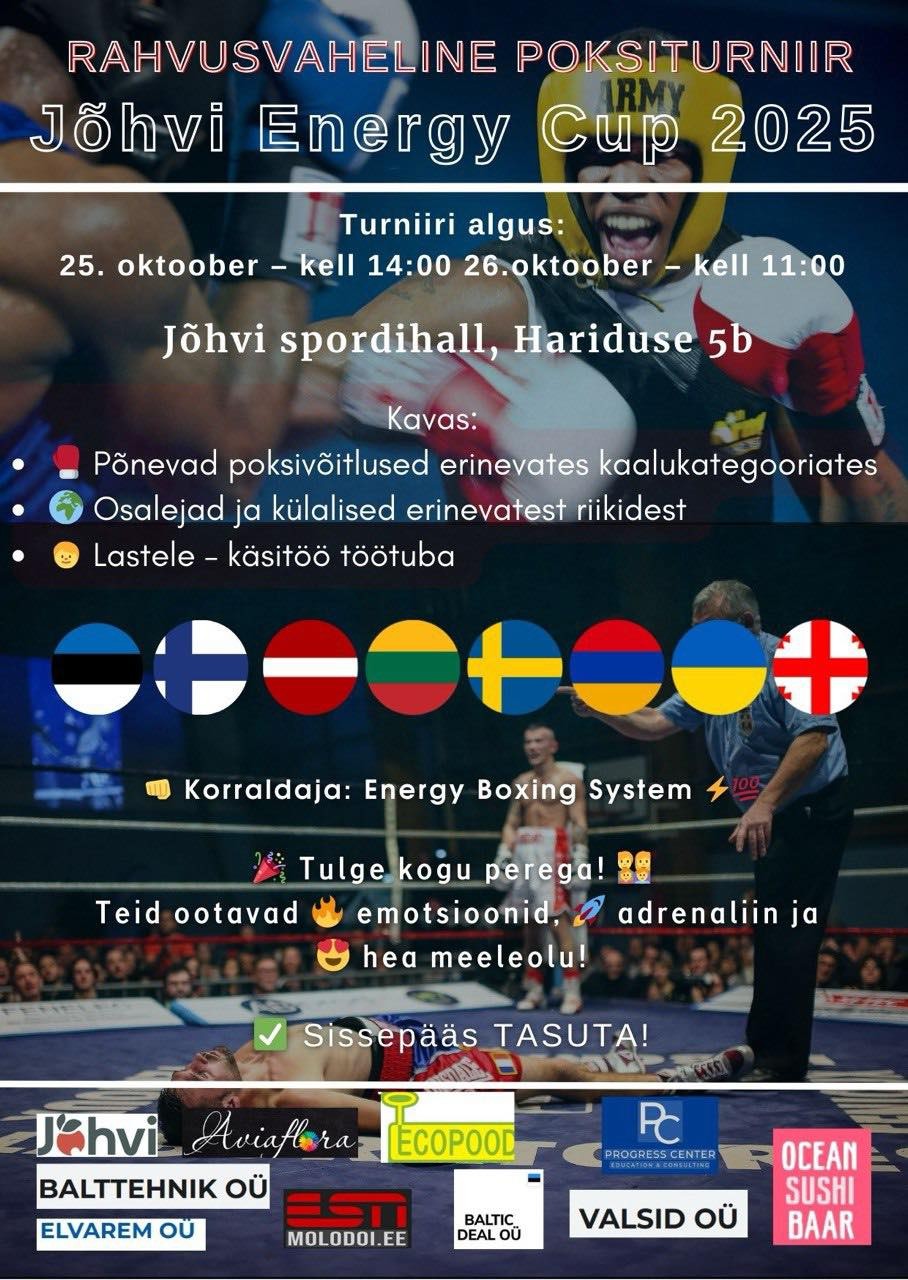 Мы рады объявить о проведении первого турнира в истории Йыхвиской боксерской энергетической системы и пригласить всех жителей и гостей города из Кохтла-Ярве! Не упустите возможность поддержать наших местных боксеров и насладиться настоящими боями.