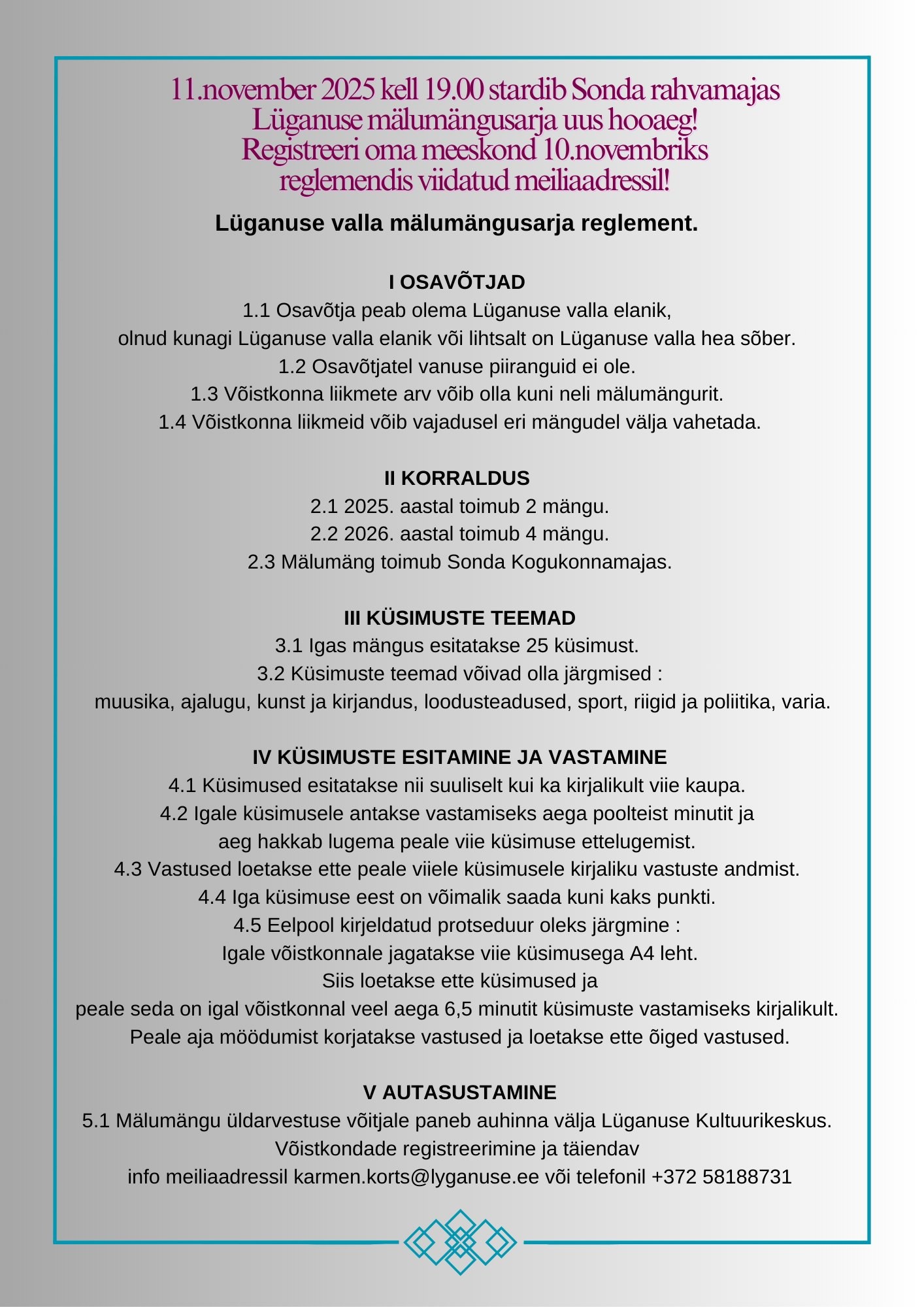 Ваша команда для регистрации до 10 ноября 2025 года karmen.korts@lyganuse.ee