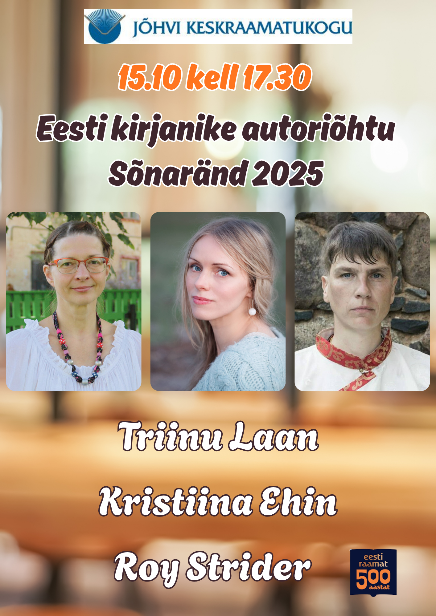 15 октября в 17:30 у нас в гостях эстонскиме писатели Трийну Лаан, Кристина Эхин и Рой Страйдер.